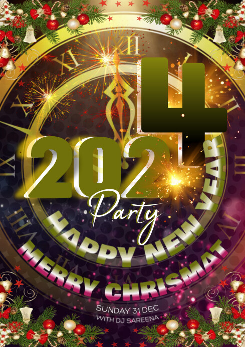 Sjabloon Happy new year Party 2024 Merry christmas | PosterMyWall